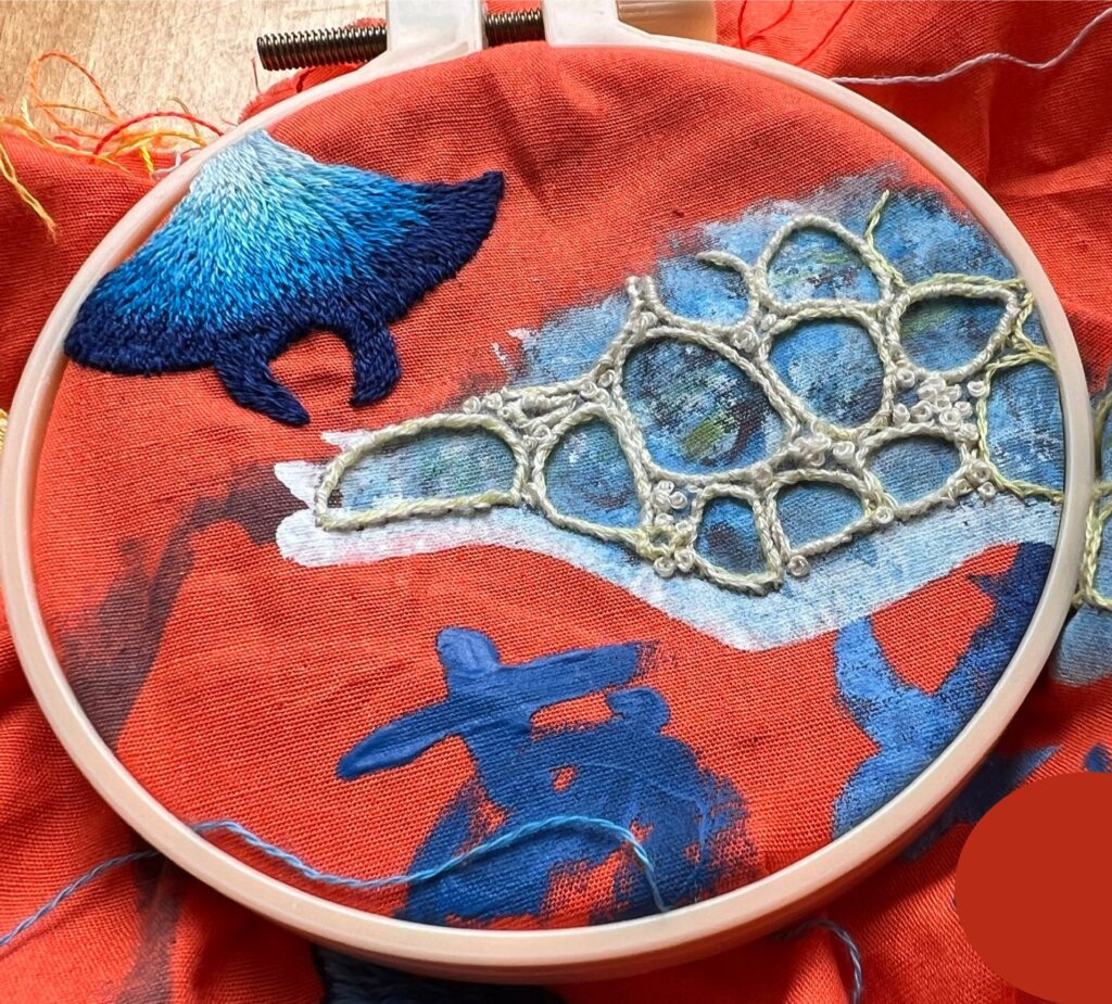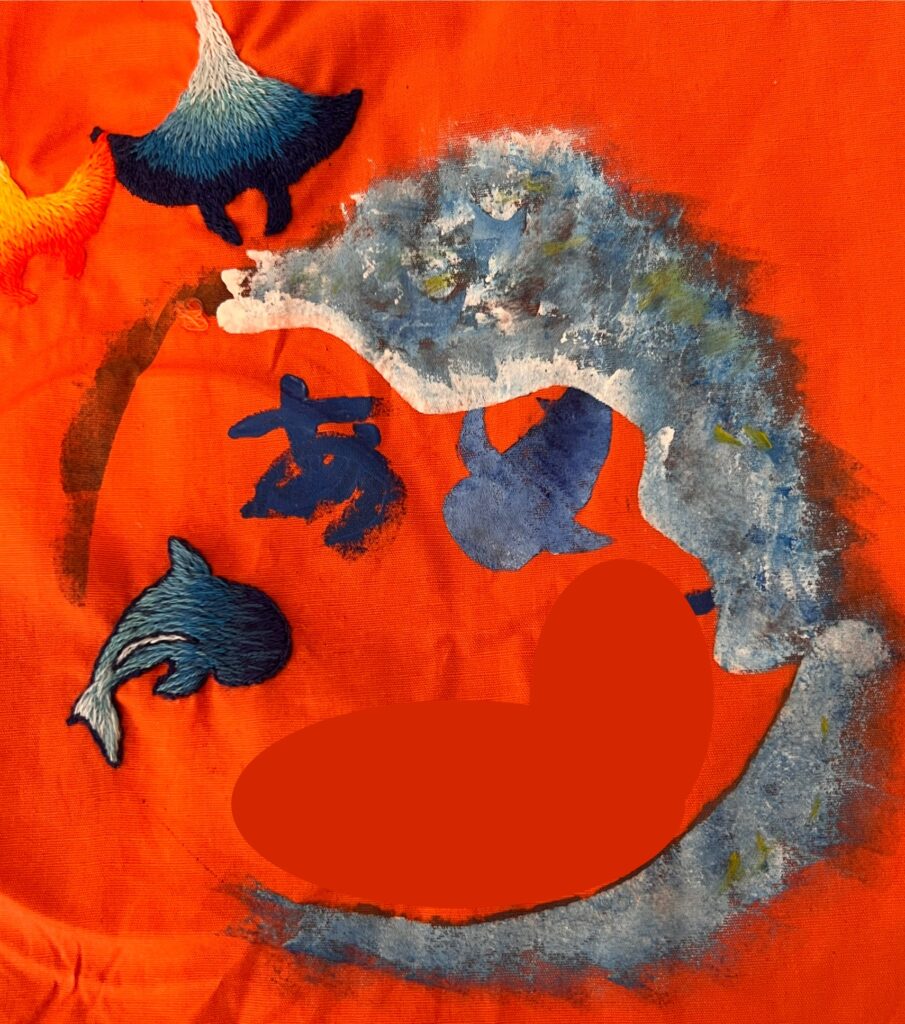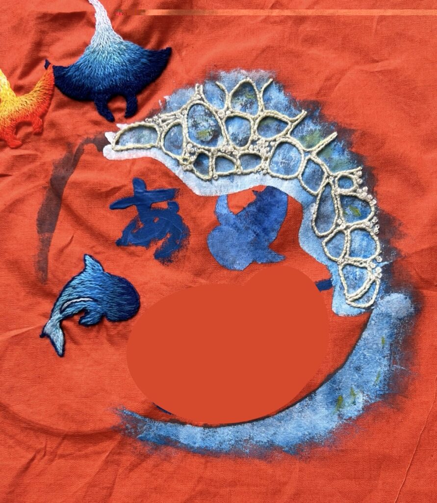 うちのん足形刺繍~マンタとジンベイザメ 海の完成~