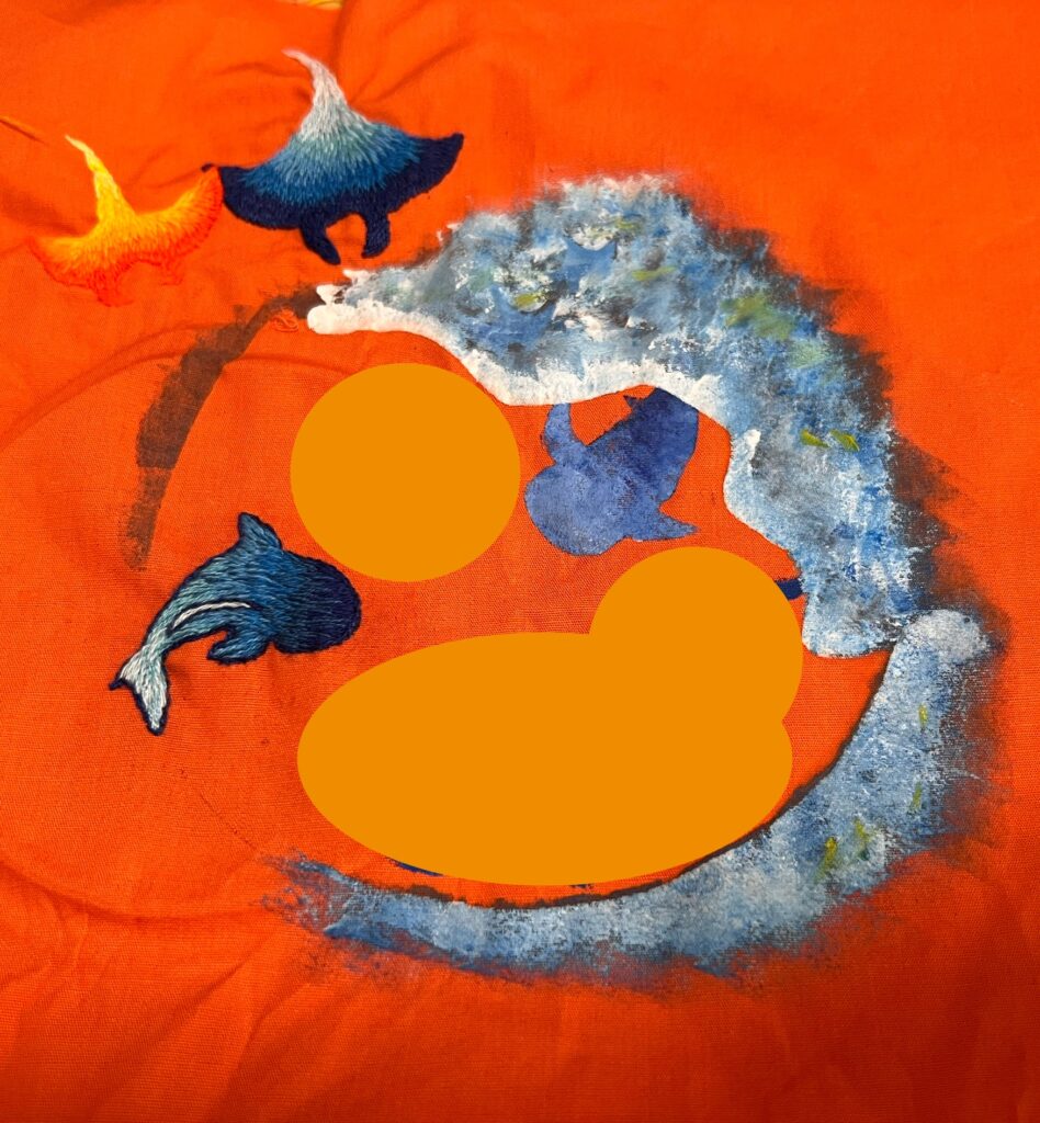 長女のリクエストにこたえて、マンタとジンベイザメの刺繍を命名書の周りに入れる予定です。