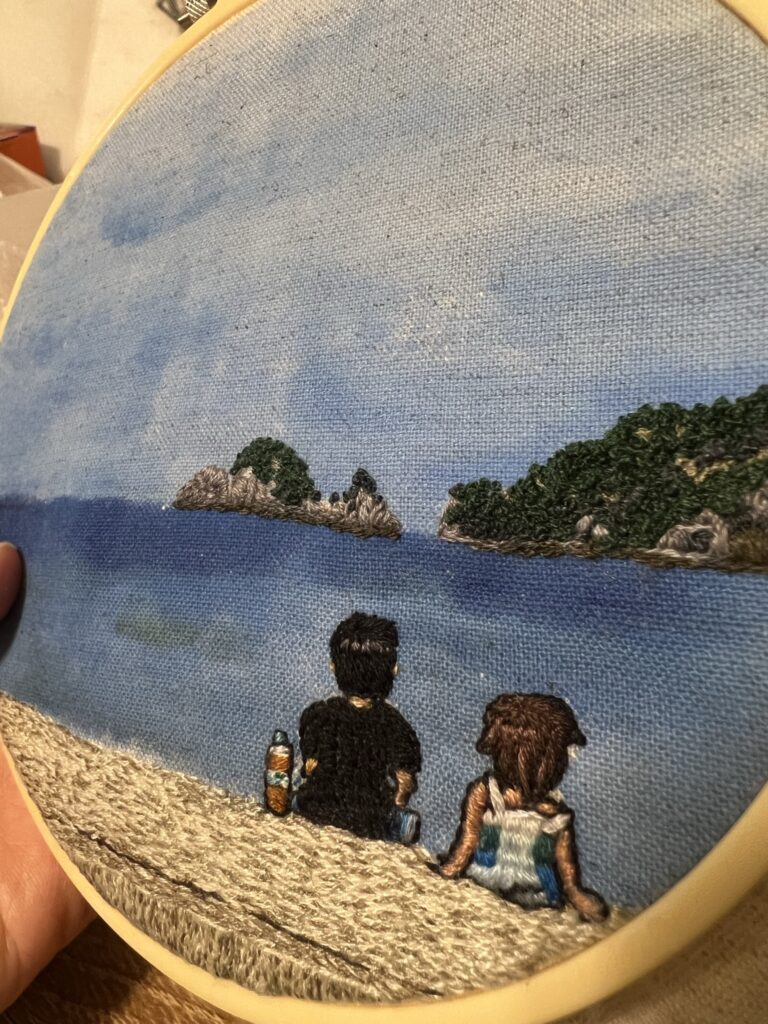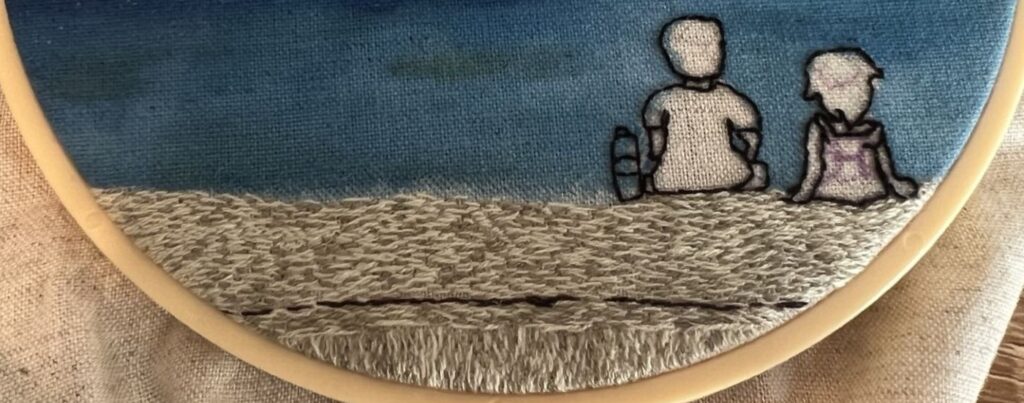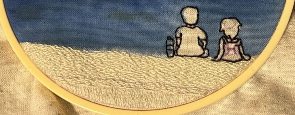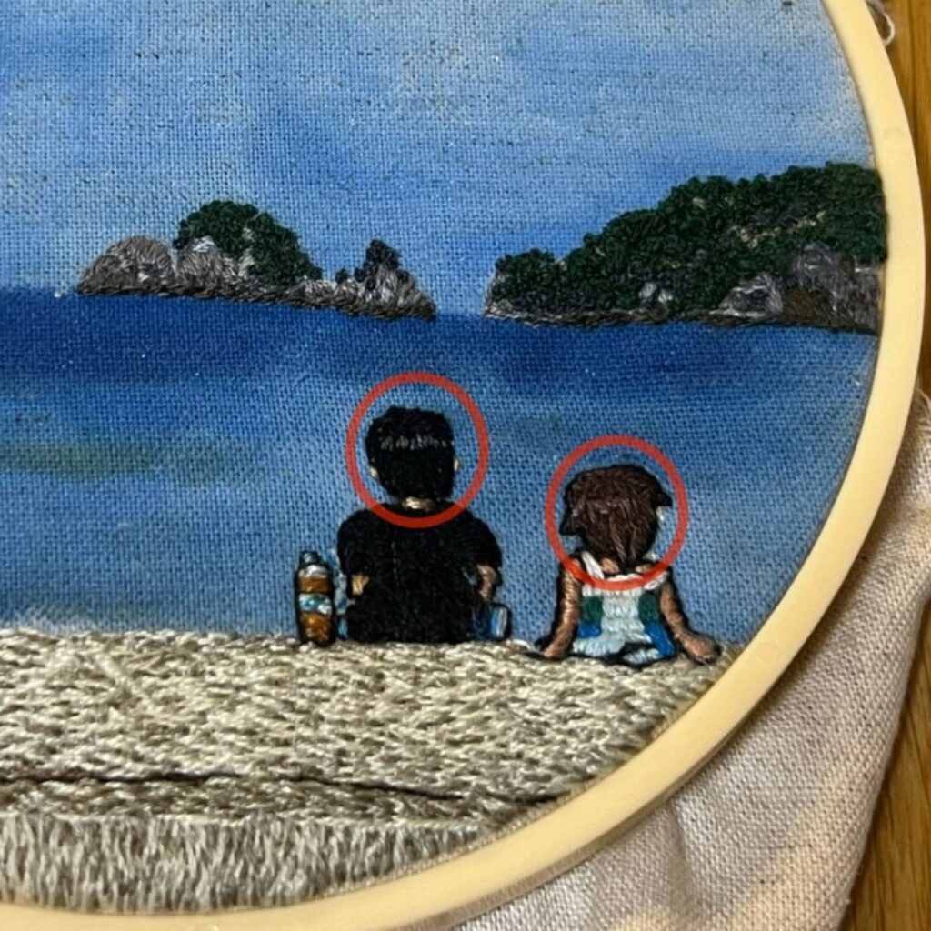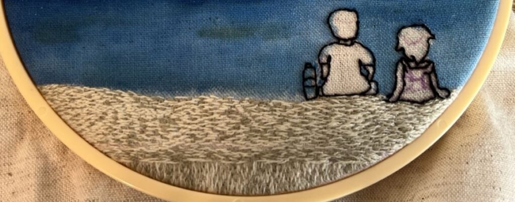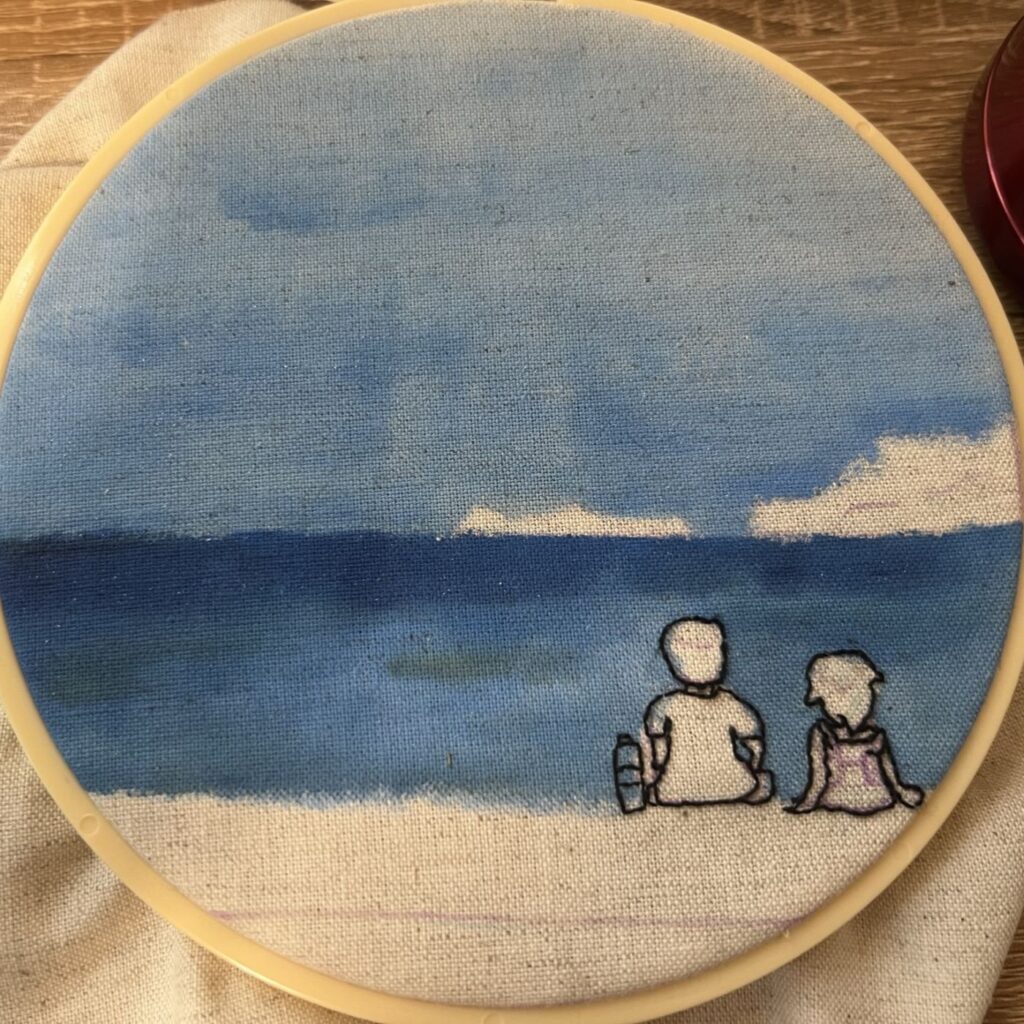 今回は、家族旅行で海へ行った時の思い出を刺繍にしたものです。